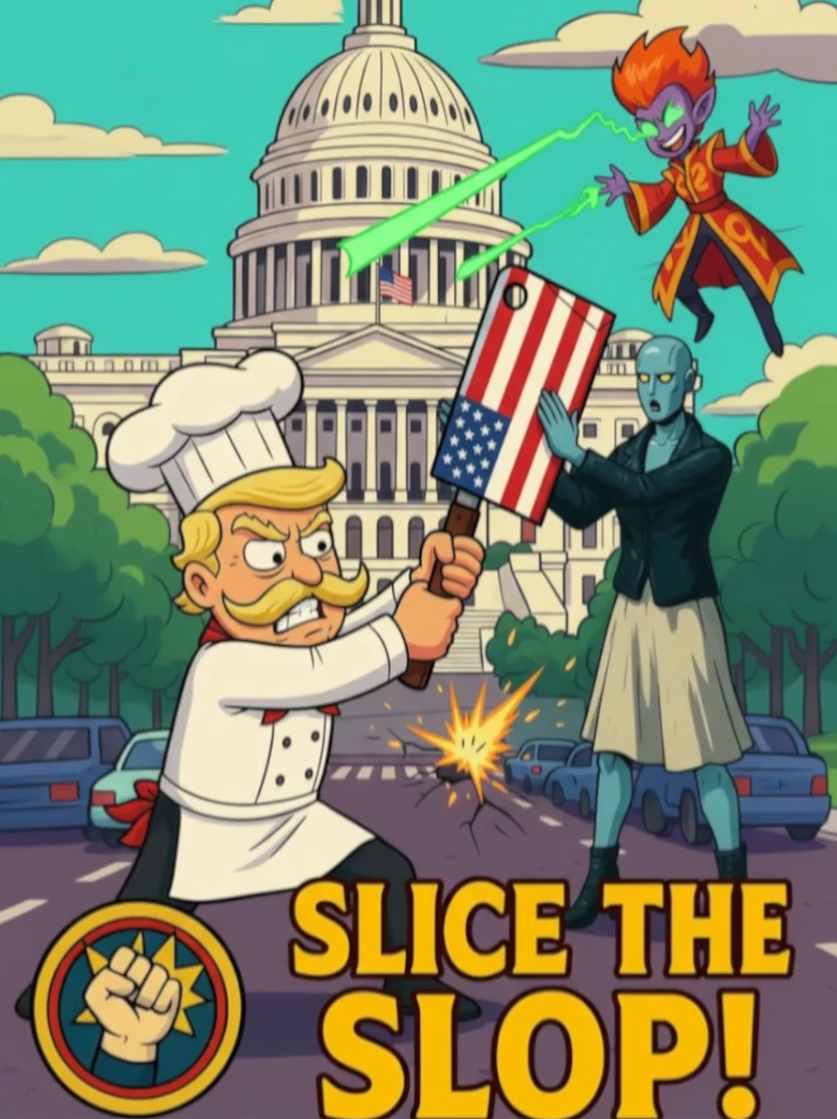 Arcade slicing action — join Chef Liberty to cut through the nano-slop and free minds across a satirical sci‑fi world.